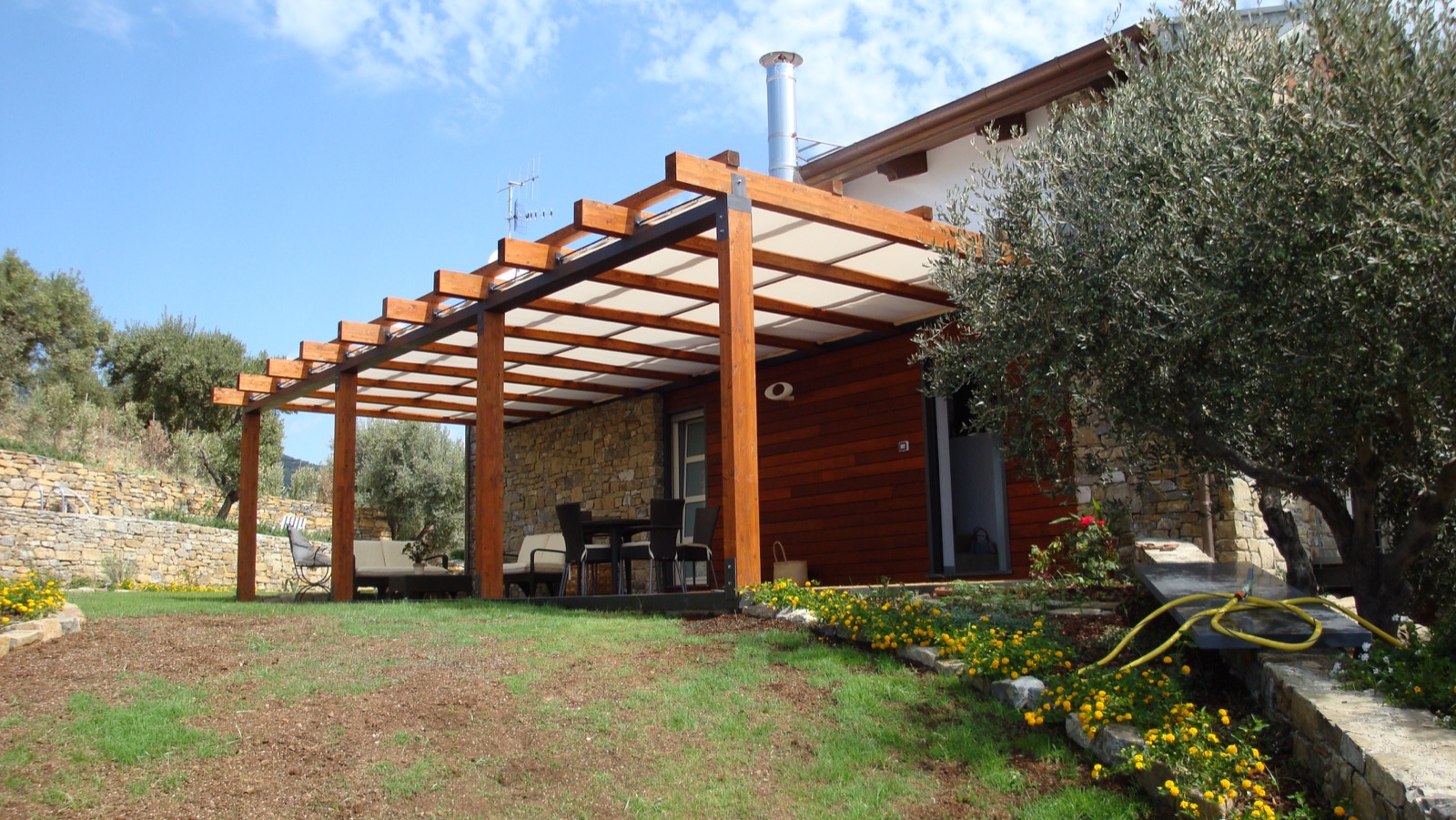 Il pergolato può essere addossato all’abitazione collegandosi alla facciata con la funzione di portico, oppure può essere autoportante e, in questo caso, posizionato in qualsiasi parte del giardino, anche sul confine previo accordo di buon vicinato.