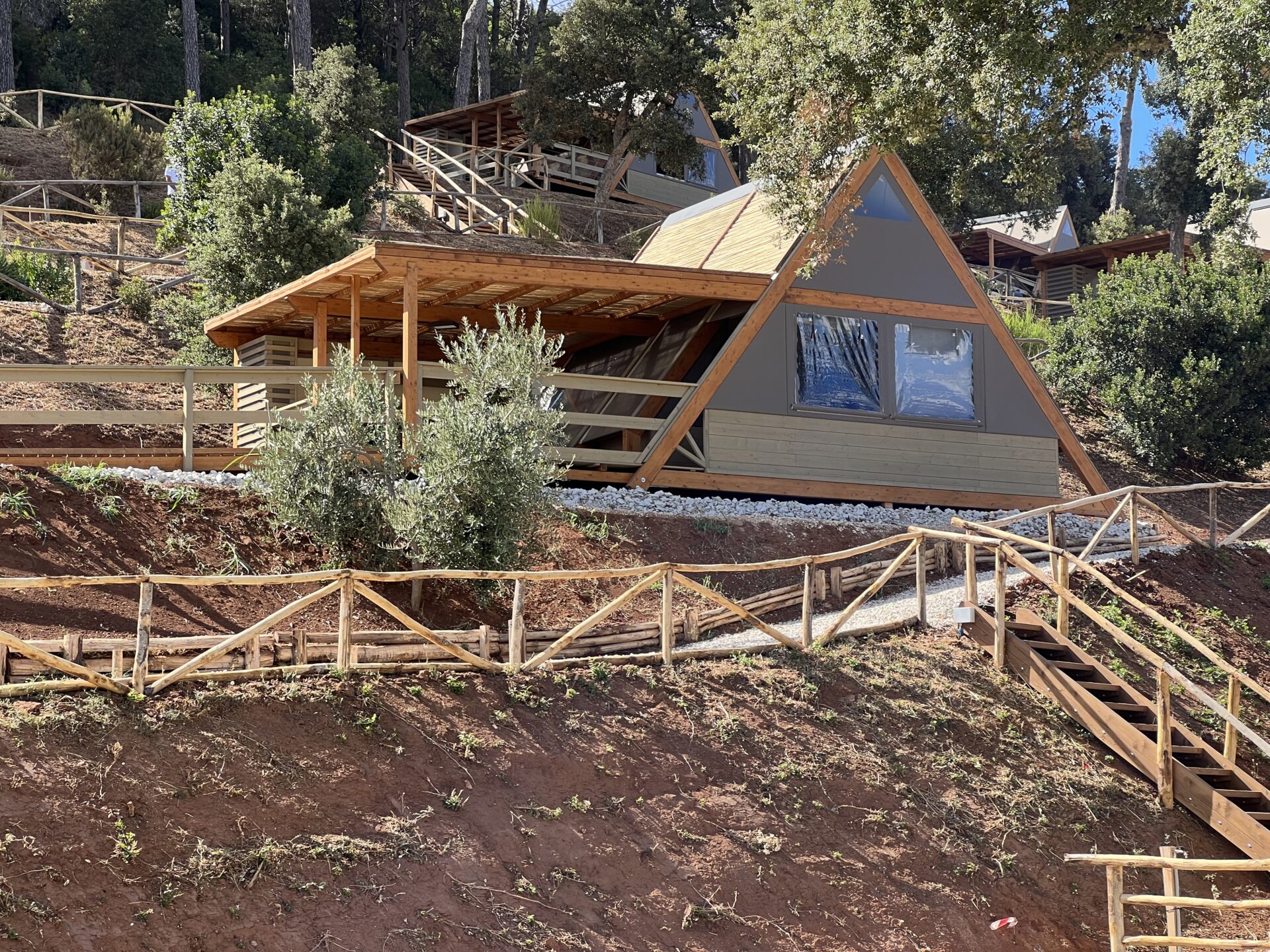 - Come costruttori di case in legno bioclimatiche abbiamo trasferito la stessa tecnica alle nostre tende glamping: durabilità del legno, assenza di ferramenta in acciaio all’esterno come negli stabilimenti balneari.